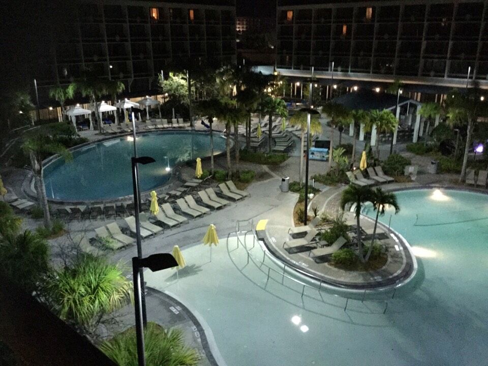 这一切看似很美好,但是当天半夜到旅馆的时候,意外发生了。前台的老奶奶告知原来定好的 King bed 房间已经售完,现在只有两张床的房间了,不过是面朝游泳池的,如果想要 kingbed 要第二天再搬一次。当时,我有点不想争执了,放下行李去住算了。而这个想法是非常错误的。你提前定了房,而酒店把你定的房售出去了,这肯定是他们的不对。正所谓 crying baby get milk,在美国有这种不公平的是对方理亏的事情一定要据理力争。于是我们最后非常严肃的阐明了立场并表示是 SPG 信用卡的持卡人,于是老太太继续搜索,给我们升级了一个面朝游泳池的五楼套房,有会客室,卧室和阳台,原价加税要 $210 多。所以,一不小心每点 SPG 就换出了 5.5c 的价值。
